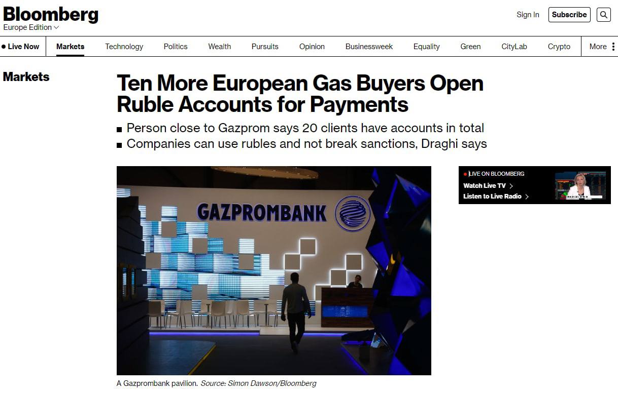 Заявление немецкой компании появилось после того, как премьер-министр Италии Марио Драги заявил что "на самом деле, доказательства, которые мы видели сегодня утром (в среду), показывают, что крупнейший импортер газа в Германии уже заплатил в рублях".