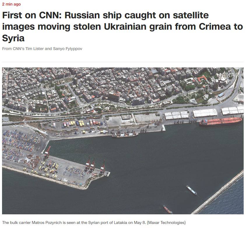Согласно исследованиям из открытых источников и украинским официальным лицам, "Матрос Позынич" одно из трех судов, занимающихся торговлей украденным зерном, пишет CNN.