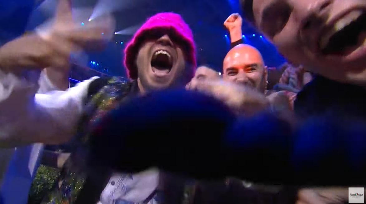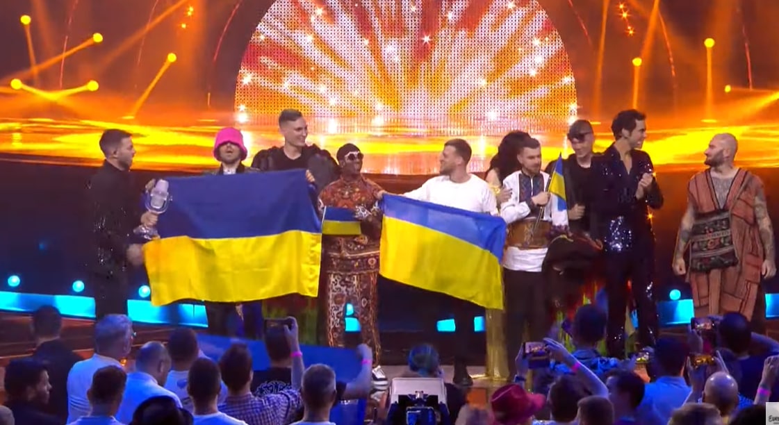 После оглашения результатов конкурса солист группы Kalush Orchestra, выйдя на сцену, прокричал "Слава Украине!"