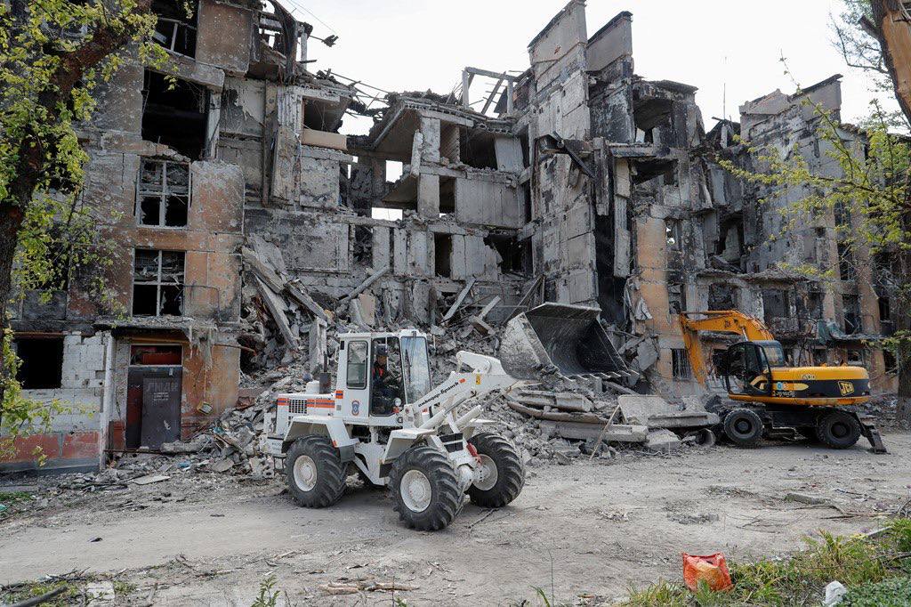 Из центра Мариуполя основной мусор уже убрали, хотя выглядят улицы по-прежнему крайне печально.
