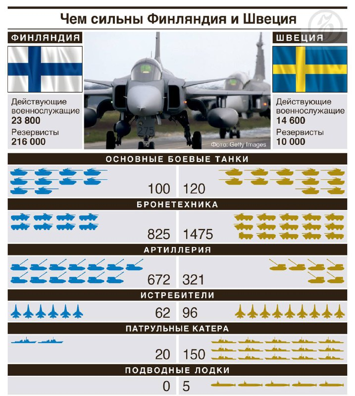Появилась инфографика о составе вооруженных сил Швеции и Финляндии, которые уже завтра, 18 мая, подадут заявку на вступление в НАТО.