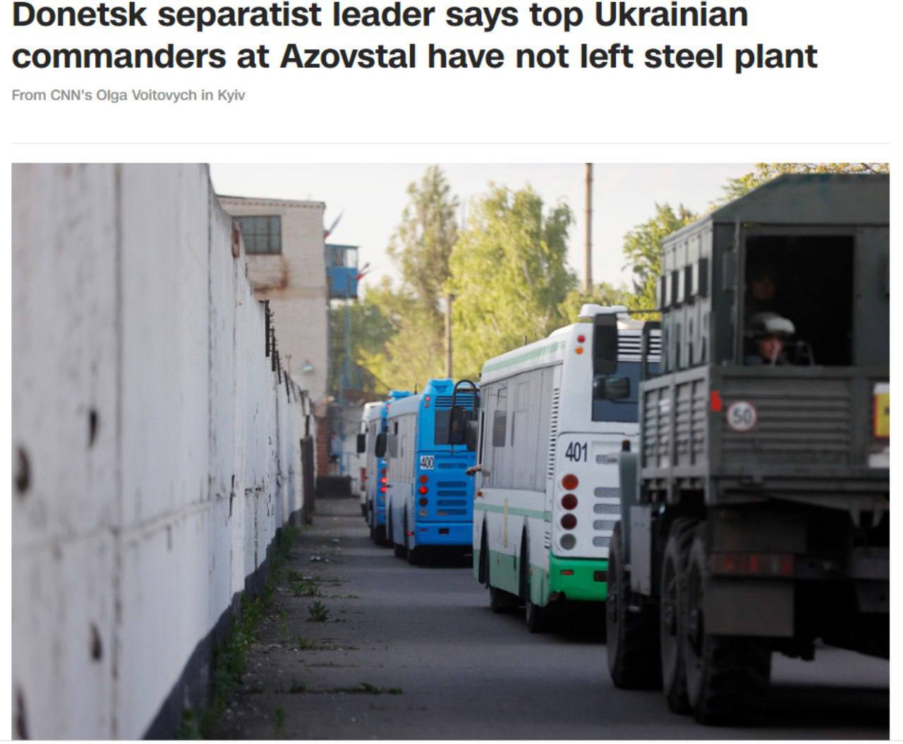 Украинские военные покидают завод "Азовсталь" в Мариуполе и отправляются на территорию, подконтрольную "ДНР". В Украине говорят, что они выходят для последующего обмена. В России называют это сдачей в плен. Подробнее об этом читайте по ссылке.