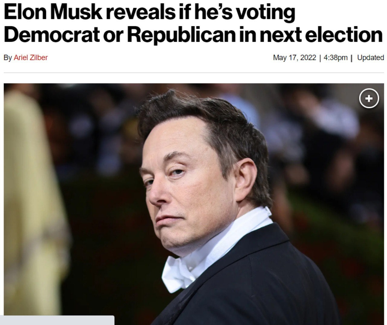 22.10 Илон Маск заявил, что будет голосовать за республиканцев, хотя многие годы отдавал голос за демократов. Об этом сообщает New York Post.