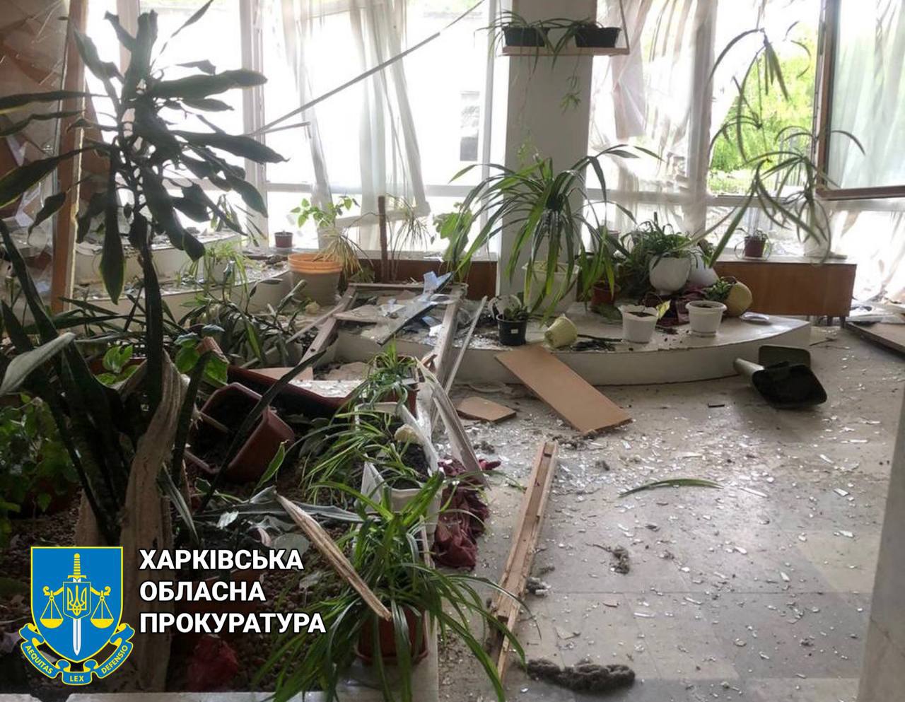 Харьковская прокуратура публикует фото последствий ракетного удара по дому культуры в Лозовой.
