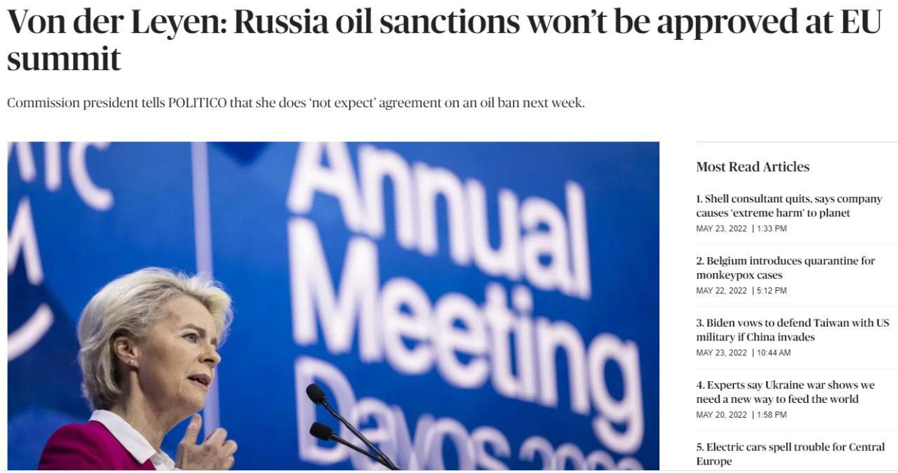 Ранее глава Еврокомиссии Урсула фон дер Ляйен считает, что Евросоюзу не выгодно прямо сейчас отказываться от российской нефти. По ее мнению, если Россия не сможет продать свою нефть в ЕС, она может перенаправить ее на мировой рынок и выручить там крупные суммы благодаря поднявшимся ценам. В таком случае, полный и немедленный отказ Евросоюза от закупок российской нефти может сыграть Москве на руку и принести большие деньги.