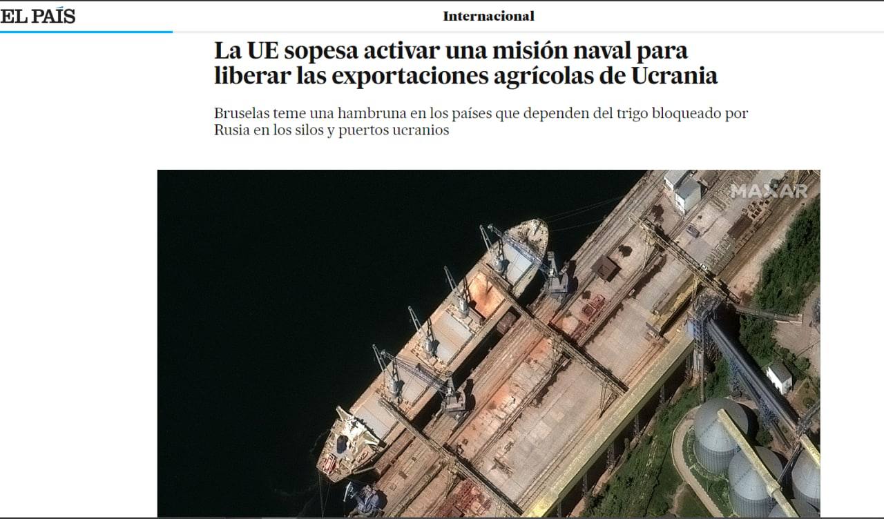 Евросоюз рассматривает возможность военно-морской миссии для помощи в вывозе зерна из Украины. Один из вариантов - вывоз из Одессы.
