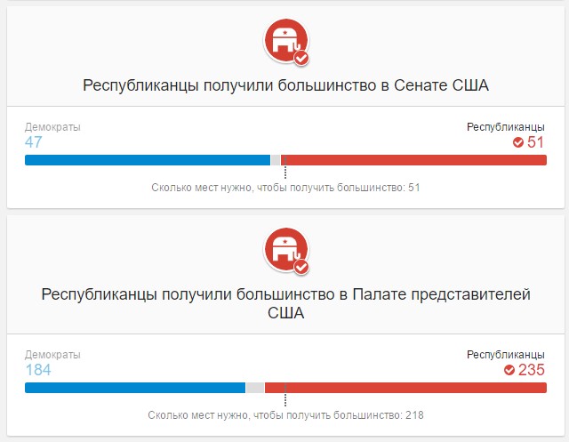 - Республиканцы сохраняют контроль над Палатой представителей Конгресса и Сенатом и смогут сформировать такое правительство, которое захотят. Отмечу, что Трамп не является лидером Республиканской партии, поэтому переговоры между командой Трампа и фракцией республиканцев простыми не будут.