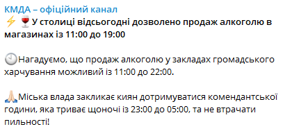 Напомним, в Киеве с 1 апреля после пятинедельного запрета вновь разрешили продажу алкоголя в ограниченном режиме – с 11:00 до 16:00.