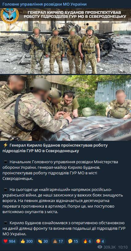 2. Касаемо Северодонецка - ВСУ сообщают, что враг продолжает штурм, но деталей о том, какую территорию он занял, не приводится. Губернатор Сергей Гайдай говорил о половине города под РФ. В тоже время главред сайта «Цензор» Юрий Бутусов пишет, что украинские войска контролируют только промзону и прилегающий к ней квартал.
