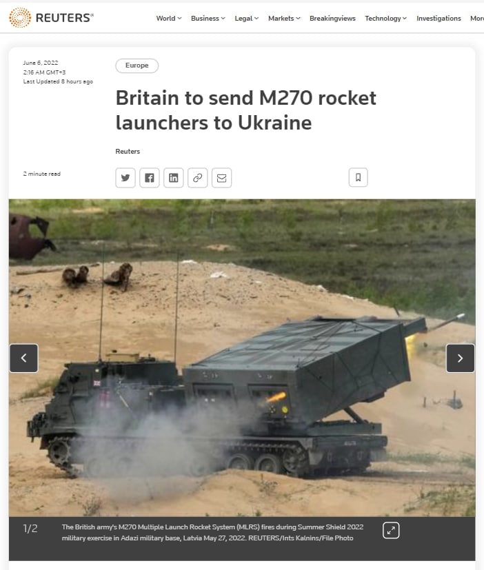 Напомним, отправку таких систем Британия анонсировала 2 июня. Количества установок Уоллес не сообщает. Но вряд ли их будет больше, чем отправляют американцы (США прислали 4 РСЗО).