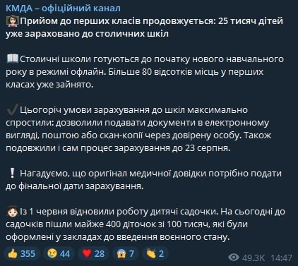 Ранее первый заместитель министра образования и науки Андрей Витренко сообщил о том, что в Украине с 1 сентября начнется новый учебный год. Школьники будут учиться в очном режиме. Он добавил, что начало учебного процесса во многом зависит от ситуации, а сейчас проводят аудит школ на предмет того, есть ли в них бомбоубежища, чтобы обеспечить безопасность детей и педагогов.