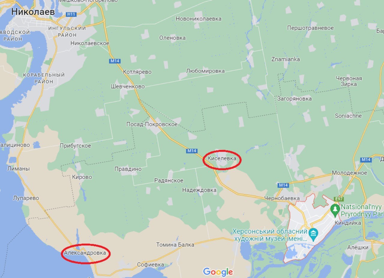 14.15 ВСУ ведут контрнаступление в направлении Киселевки, Солдатского и Александровки на юго-западной границе Херсонской области (посредине между Херсоном и Николаевом).