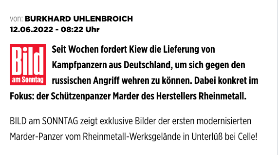 Производитель немецких БМП Marder компания Rheinmetall уже подготовила несколько машин для отправки в Украину. Теперь решение за правительством ФРГ.