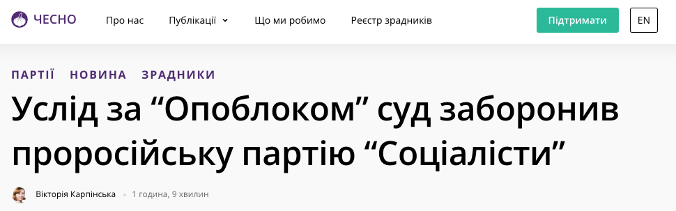 В Украине запретили еще одну партию по обвинению в "пророссийскости". Вслед за "Оппоблоком" вне закона оказалась и партия "Социалисты".