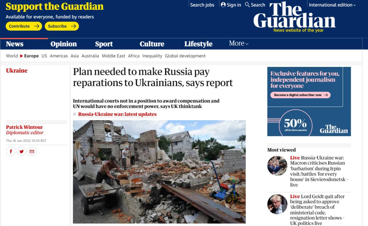 Эксперты пока не видят механизма, как заставить РФ заплатить Украине репарации за войну - The Guardian