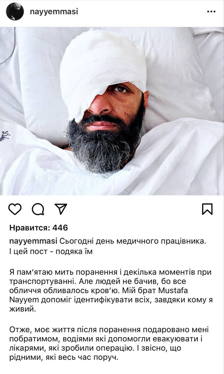 17.31 Маси Найем опубликовал своё первое фото после ранения в голову, полученного на Донбассе.