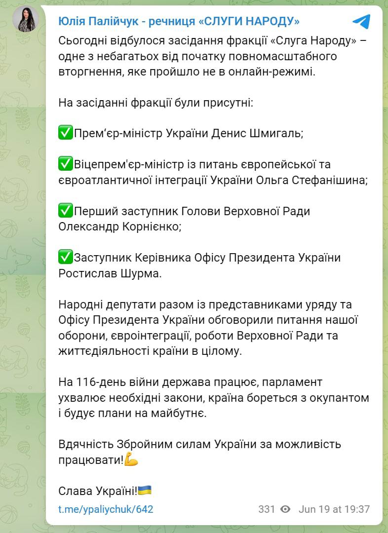 20.06 Фракция "Слуга народа" сегодня провела своё "офлайн-заседание". Заслушивала чиновников, обсуждали вопросы евроинтеграции.