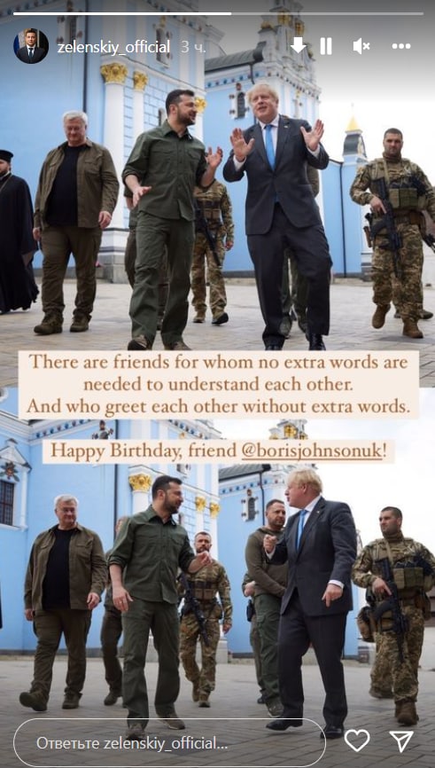21.00 Зеленский в инстаграме "без лишних слов" поздравил Бориса Джонсона с днем рождения.