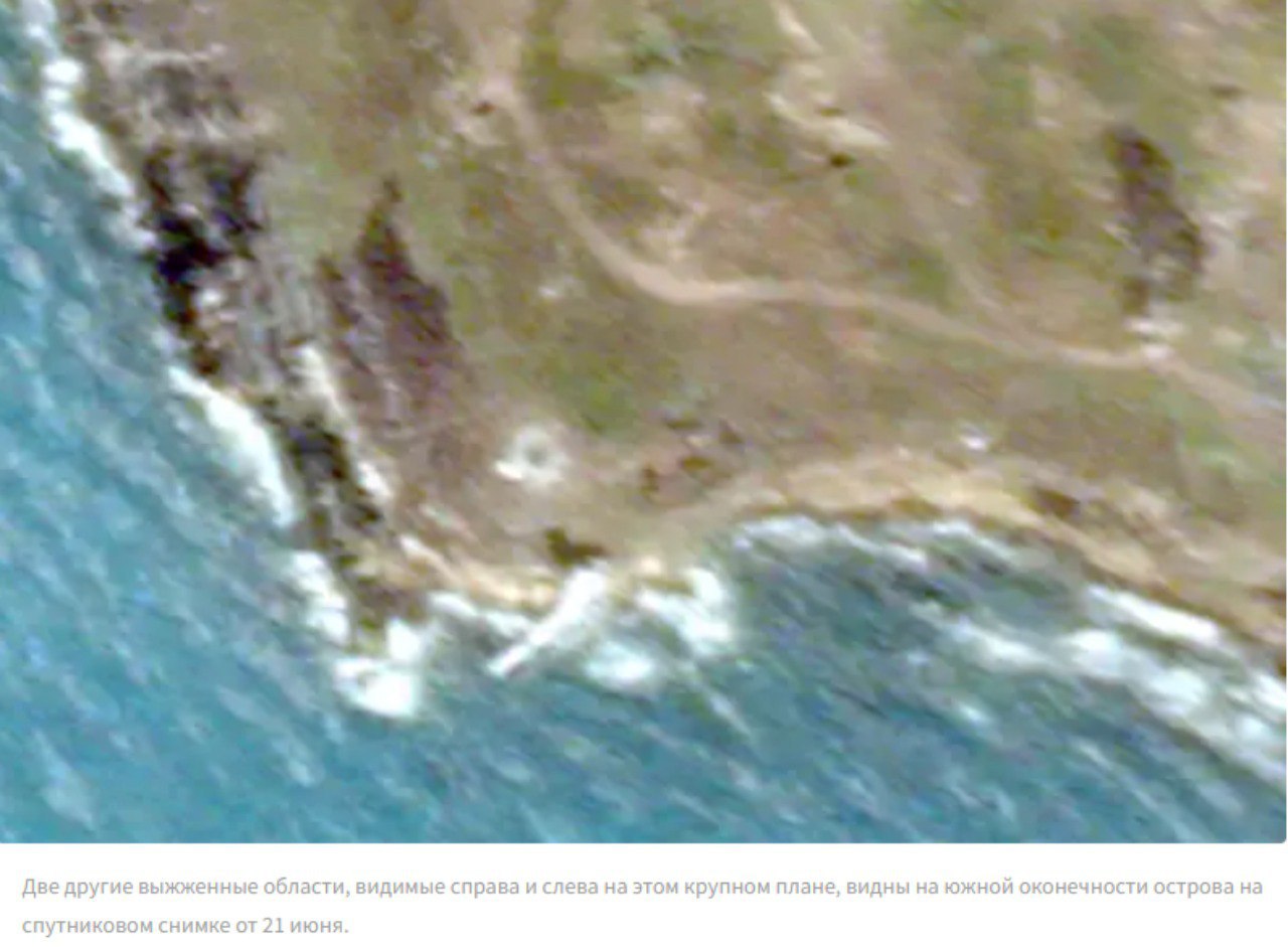 Planet Labs опубликовал спутниковые фото последствий обстрела Змеиного, на которых видна выжженная земля