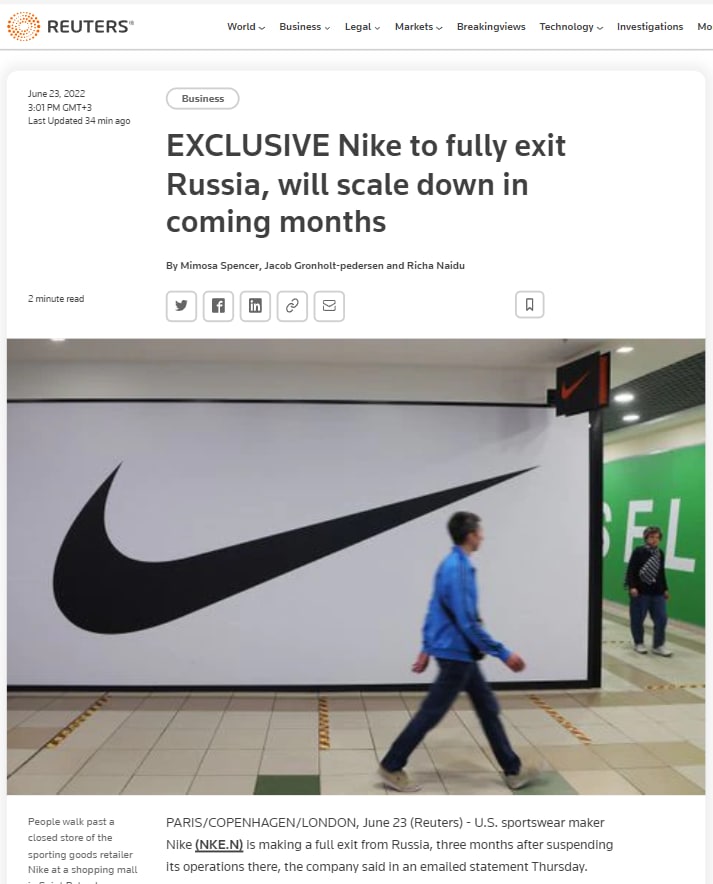 Nike покидает российский рынок