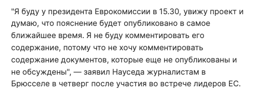"Думаю, что пояснение будет опубликовано в самое ближайшее время. Я не буду комментировать его содержание, потому что не хочу комментировать содержание документов, которые еще не опубликованы", — сказал Науседа.