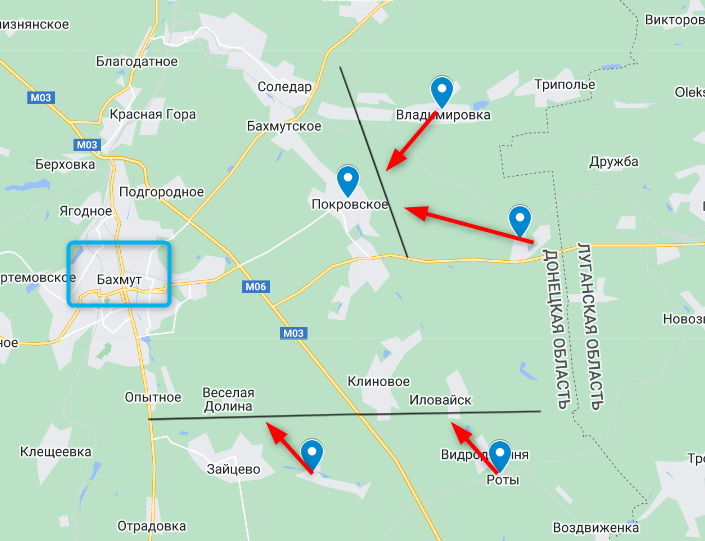 С утра сообщалось о штурме в направлении Покровского, которое в пяти километрах к востоку от Бахмута. Штурм со стороны Владимировки отбит еще утром. Южнее атака со стороны Пилипчатино захлебнулась ближе к вечеру.