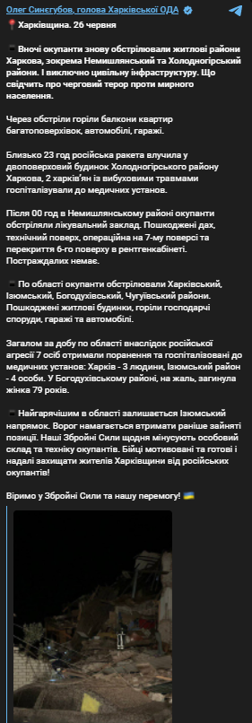 Российские оккупанты обстреляли жилые района Харькова — Синегубов. Фото