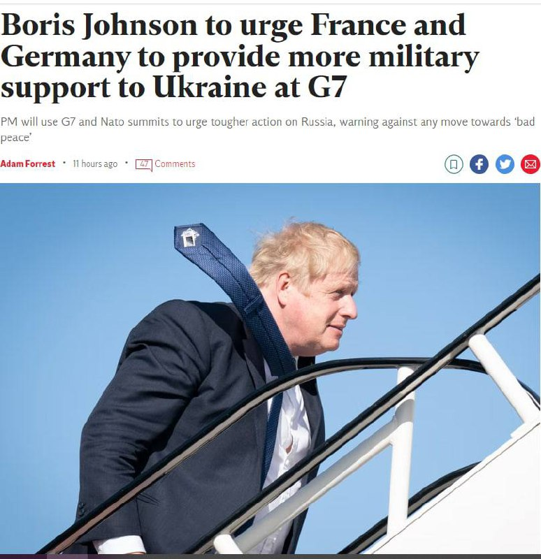 Премьер-министр Великобритании Борис Джонсон намерен использовать саммиты G7 и НАТО, чтобы призвать Францию ​​и Германию увеличить военную поддержку Украины.
