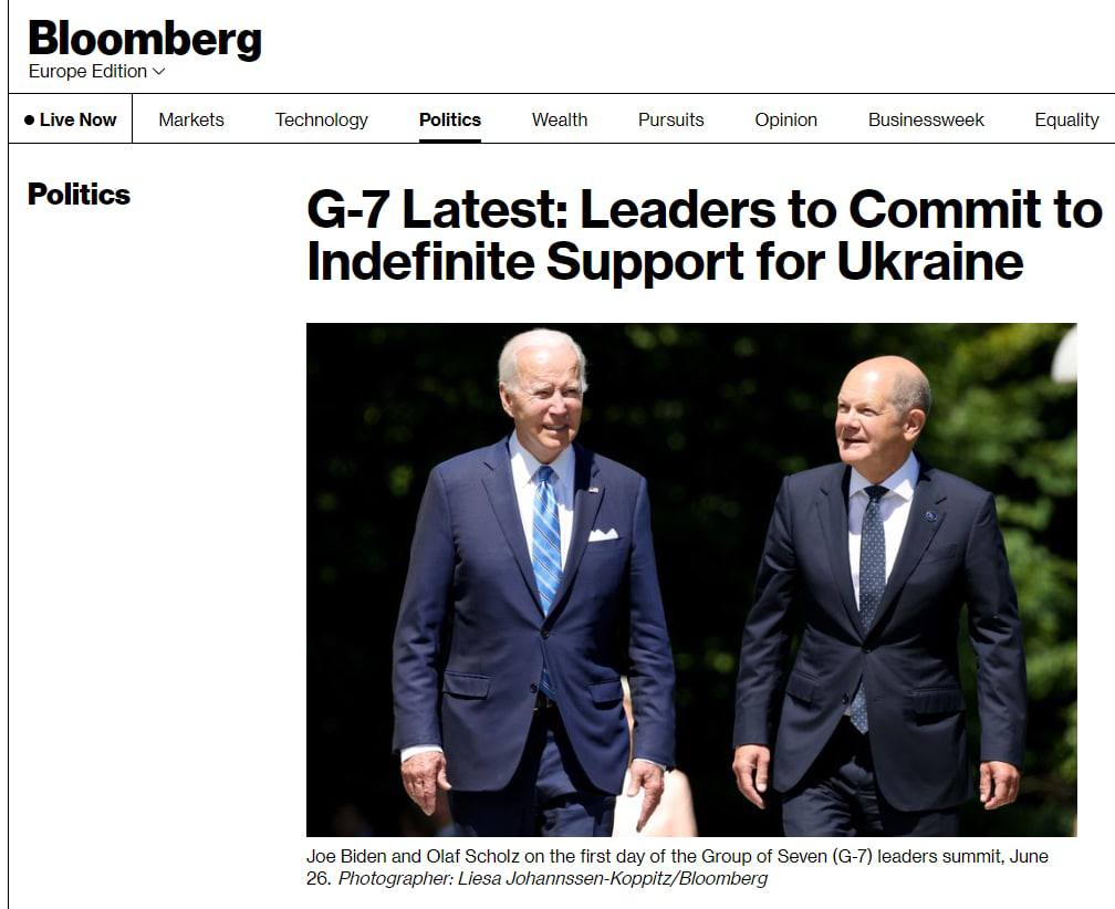 Лидеры G7 обязуются оказывать Украине бессрочную поддержку в ее защите от вторжения России.