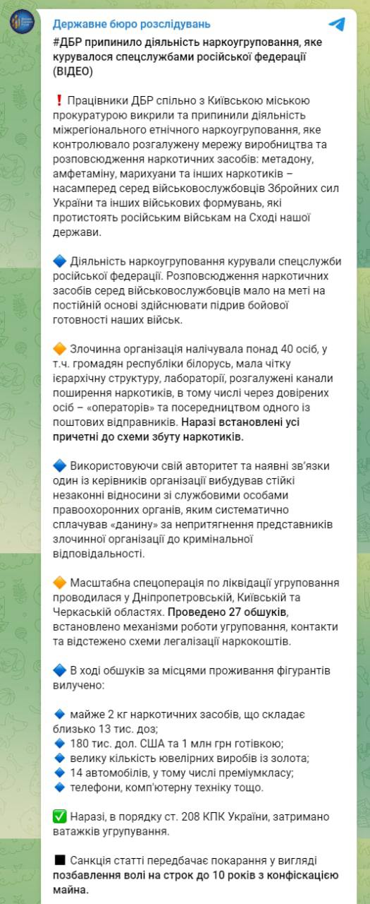 В ГБР заявили, что РФ курировала банду, производившую и отправлявшую на фронт наркотики для ВСУ