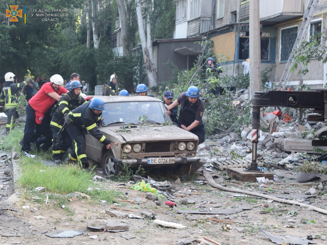 Появились фото и видео спасательных работ у жилой многоэтажки в Николаеве, в которую утром, 29 июня, попала российская ракета.