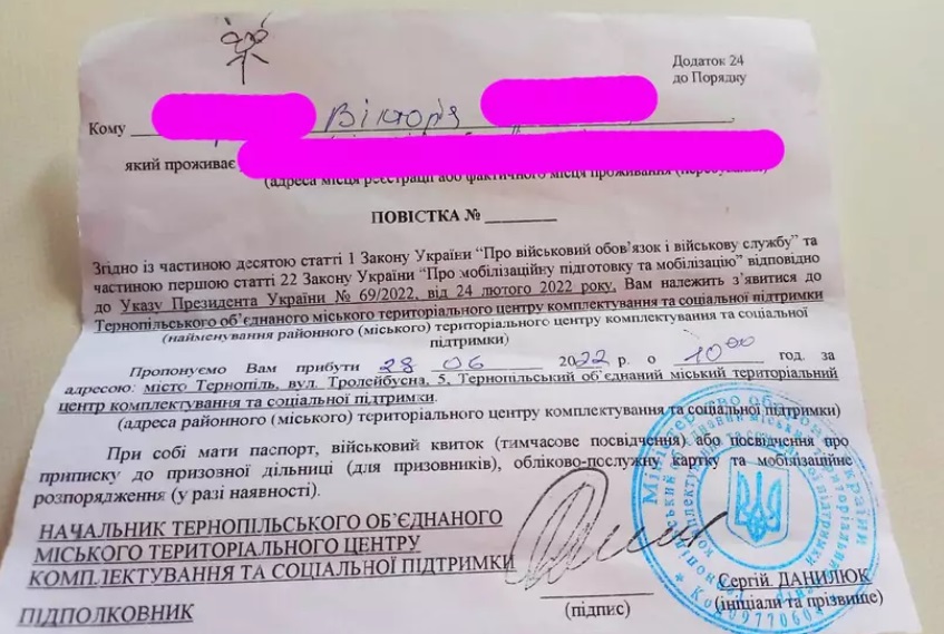 Тернопольчанка Виктория появилась на улице во время комендантского часа, ее остановил патруль и вручил ей повестку с требованием явиться в военкомат.