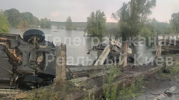 Как написано в паблике, молния ударила по мине, закрепленной на опоре моста, и она сдетонировала. В этот момент по мосту двигался автомобиль с пассажирами, который получил повреждения. В связи с этим в селе Демидов движение транспорта сейчас невозможно.