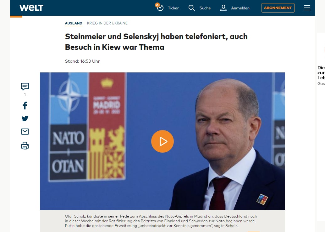 Также, по данным издания, темой была и подготовка возможного визита президента Германии в Киев.