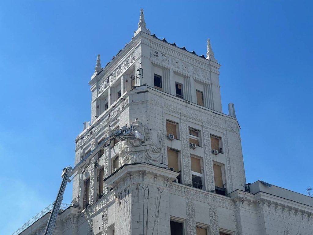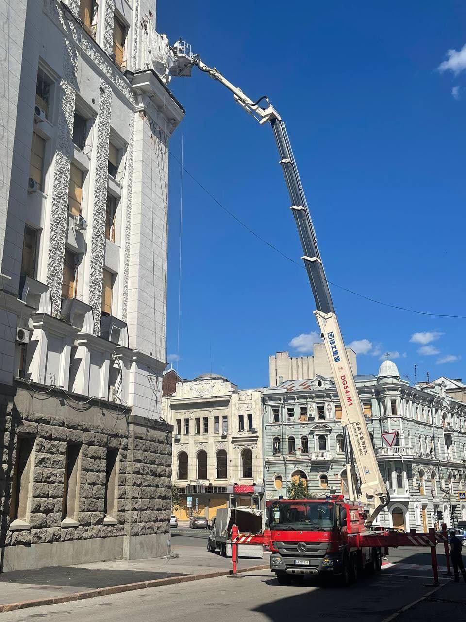 С Харьковского горсовета начали демонтировать серп и молот, о чем накануне распорядился мэр города Игорь Терехов.