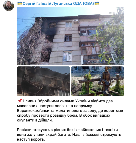 ВСУ отбили две крупные попытки наступления под Лисичанском - Гайдай