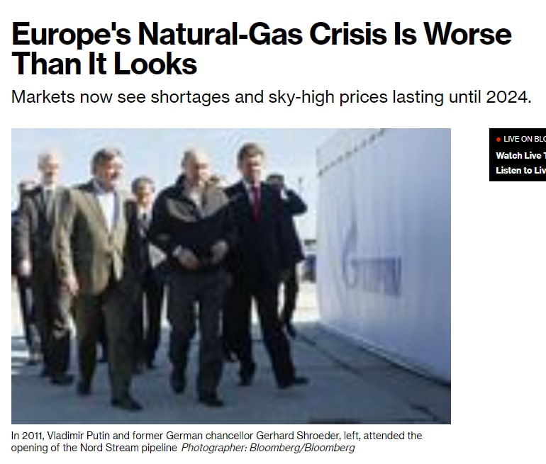 08:49 Из-за того, что украинский конфликт затягивается, цены на газ в Европе будут расти до 2024 года. Такой прогноз дает агентство Bloomberg.