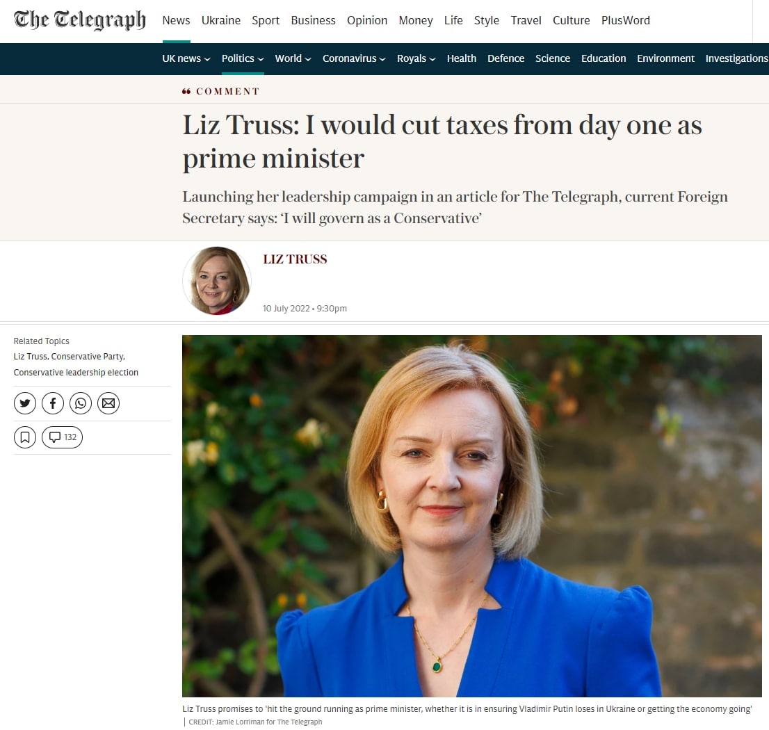 Об этом сама Трасс сообщила в авторской статье для Telegraph.
