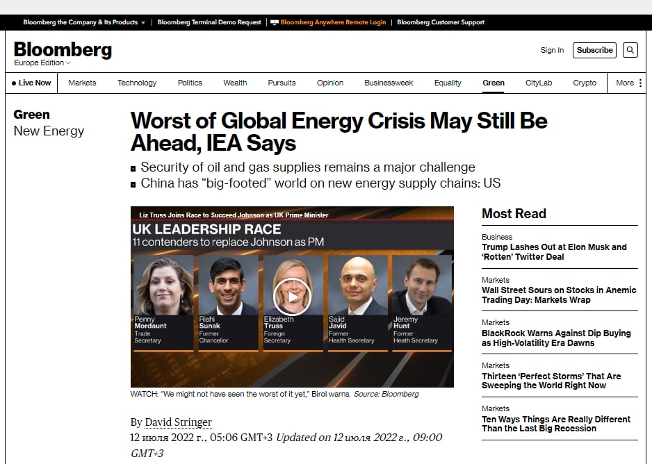 "Мир никогда не был свидетелем такого крупного энергетического кризиса с точки зрения его глубины и сложности", - заявил исполнительный директор МЭА Фатих Бироль на глобальном энергетическом форуме в Сиднее.