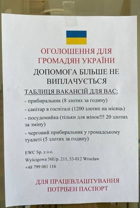 "Деньги заканчиваются, надо идти на работу, а с 2-летним ребёнком это тяжело. Украинцам предлагают в основном вакансии, на которые сами поляки не идут за такие деньги - уборщики, посудомойки, на склады, сбор урожая. Зарплата - 1,5-2,5 тыс. злотых (12-15 тыс. грн).", - делится со "Страной" киевлянка Ольга Сытник, которая бежала от войны в Варшаву с маленькой дочкой и сейчас временно живет у друзей.