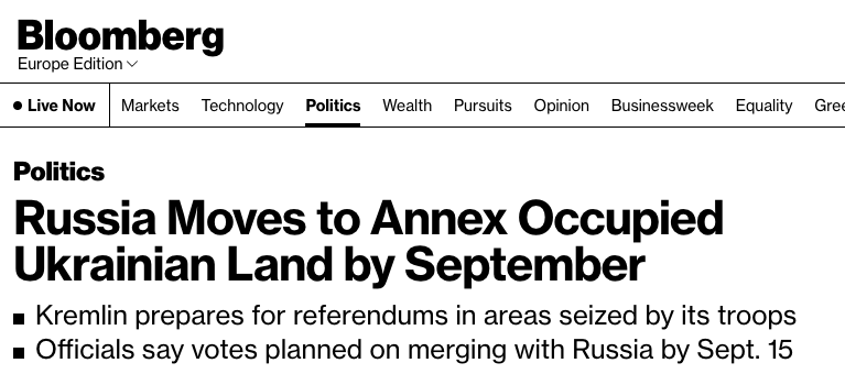 А в Американском институте изучения войны заявляли, что РФ попытается официально аннексировать все оккупированные территории уже 11 сентября. Для чего там проведут "голосования".