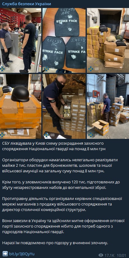 10:22 В Киеве накрыли мошенников, которые торговали амуницией, предназначенной для Нацгвардии. При обыске у них нашли 120 тысяч незарегистрированных патронов, подготовленных для сбыта.