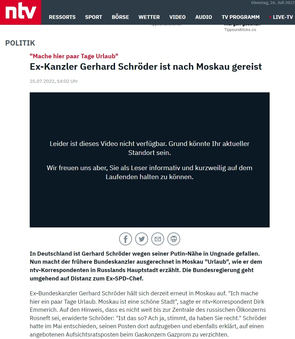 На уточнение о том, что неподалеку находится штаб-квартира российской нефтяной компании "Роснефть", Шрёдер ответил: "Неужели? О, действительно, вы правы".