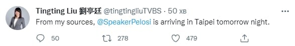 11:13 Нэнси Пелоси 2 августа будет в столице Тайваня Тайбэе, сообщила журналистка тайваньского государственного СМИ.