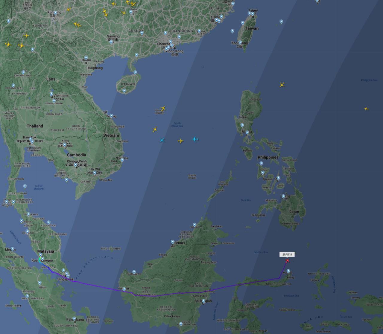 Самолет, на борту которого может находиться спикер Конгресса США Нэнси Пелоси, повернул на север - в сторону Тайваня.