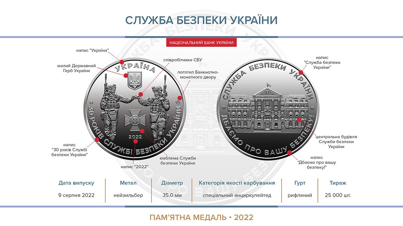 Нацбанк выпустил памятную медаль "Службы безопасности Украины". Фото