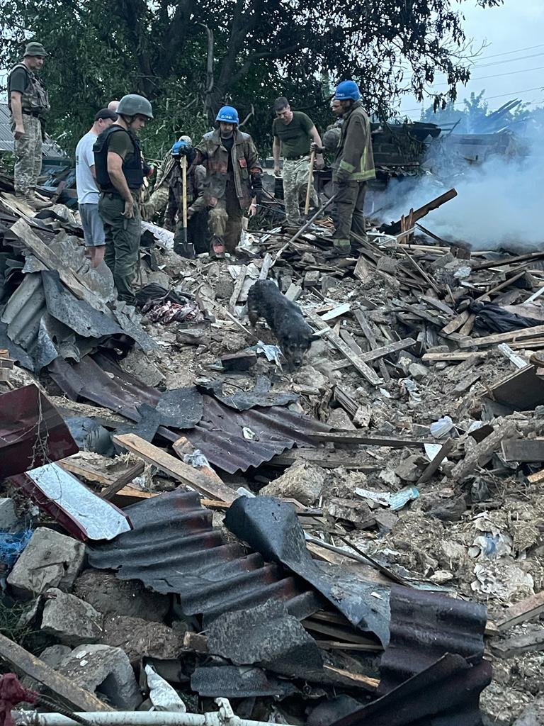 Из-за обстрелов в городе произошли пожары, под завалами разрушенных домов оказались их жители. В настоящее время из-под завалов удалось спасти женщину и поднять на поверхность тела двоих погибших мужчин.