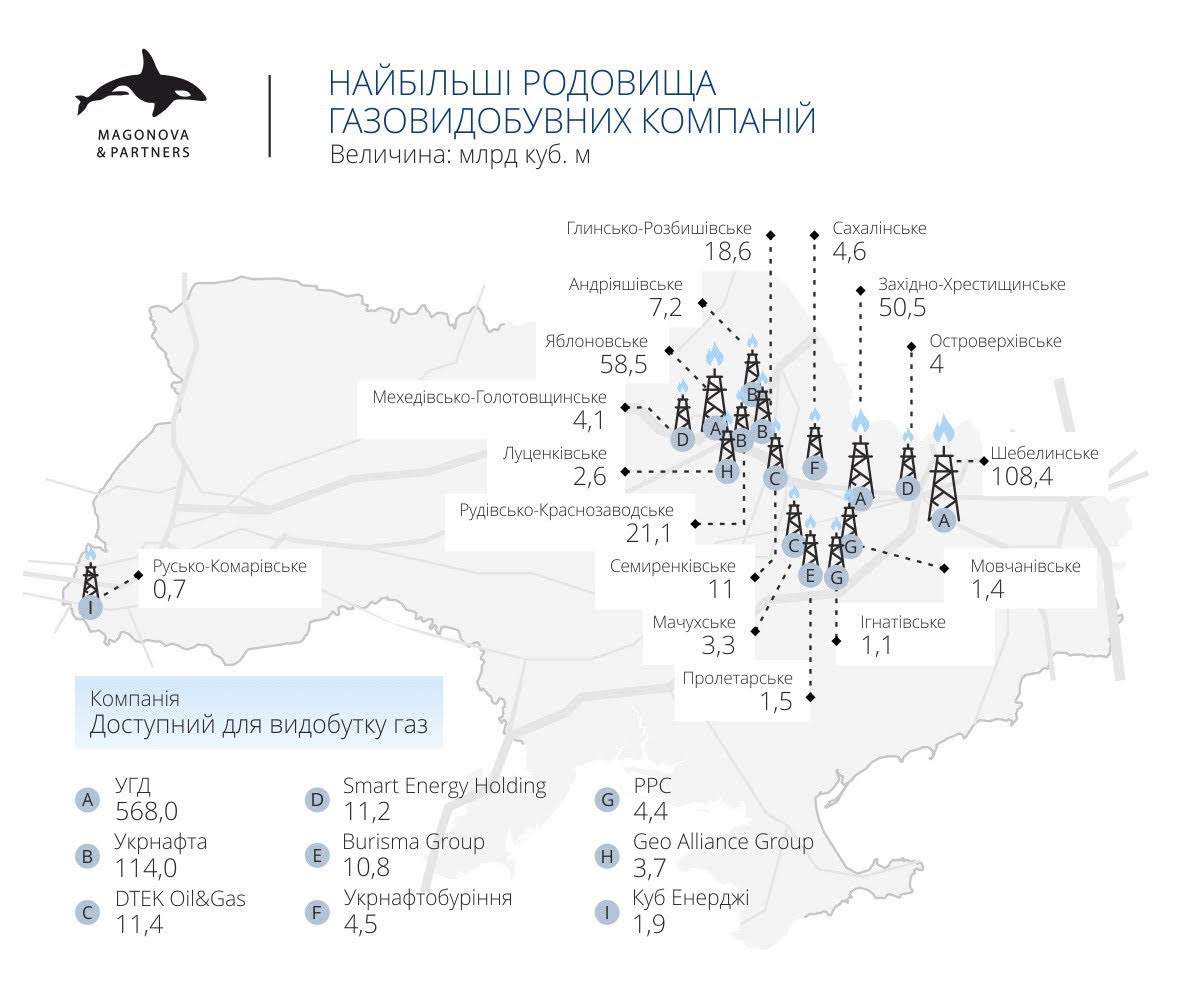 Разработка ведется на 57 нефтегазоконденсатных месторождениях, и не только в Харьковской, но также Донецкой, Луганской, Днепропетровской и Полтавской областях. Из них более-менее спокойными в плане военных действий можно назвать только Полтавскую и Днепропетровскую.
