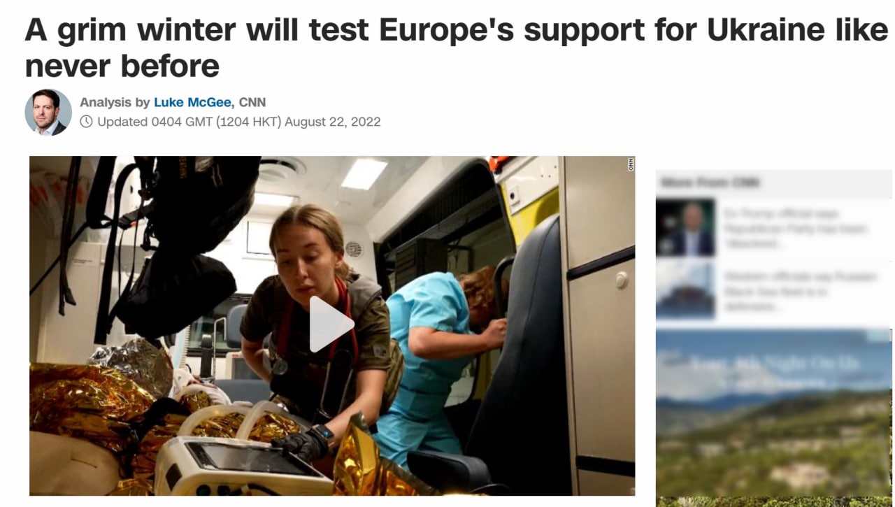 08:09 Официальные лица по всей Европе обеспокоены тем, что консенсус о поддержке Украины может рухнуть. Континент вступает в "суровую зиму роста цен на продовольствие, нехватки энергии для обогрева домов и реальной возможности рецессии", пишет CNN.