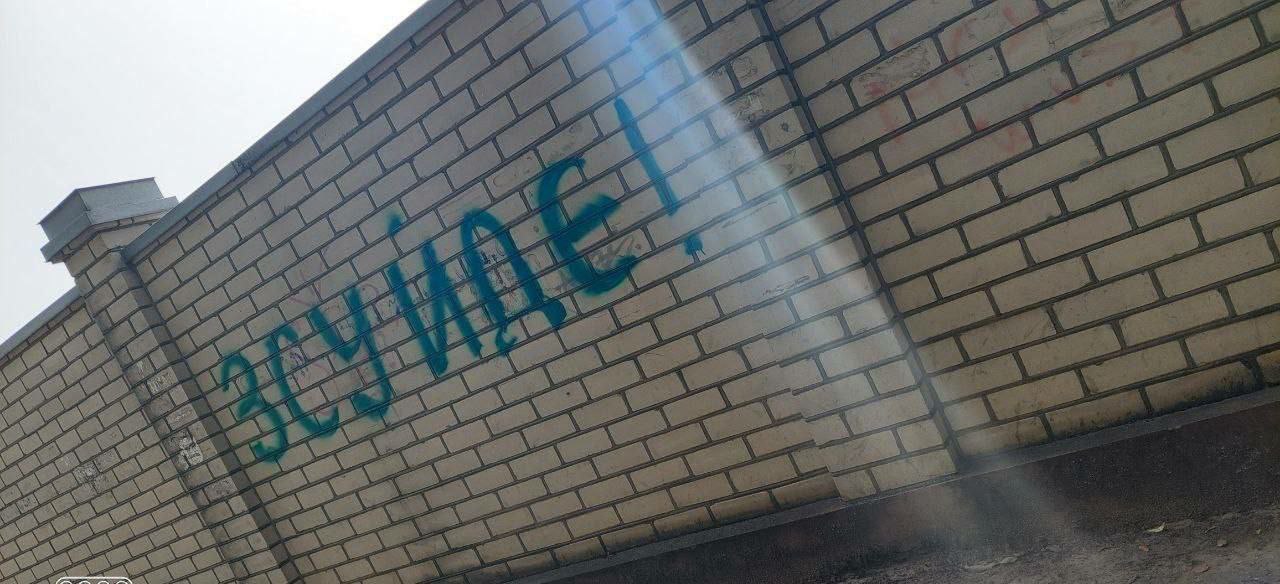 09:00 Такие граффити рисуют на заборах в Херсоне. Фото из местных пророссийских пабликов.